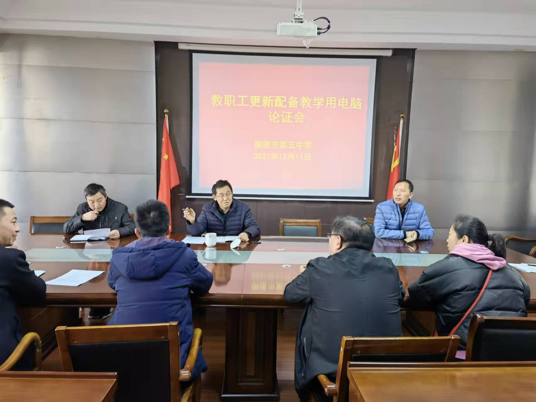 12月11日下午,市五中召開了教職工更新配備教學(xué)用電腦論證會。校長沐揚主持會議,汪校長、呂校長、信息中心周成兵、各年級部推薦代表教師、金日科技徐經(jīng)理等參加會議。