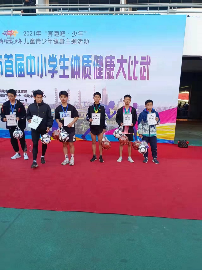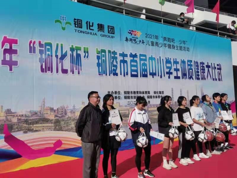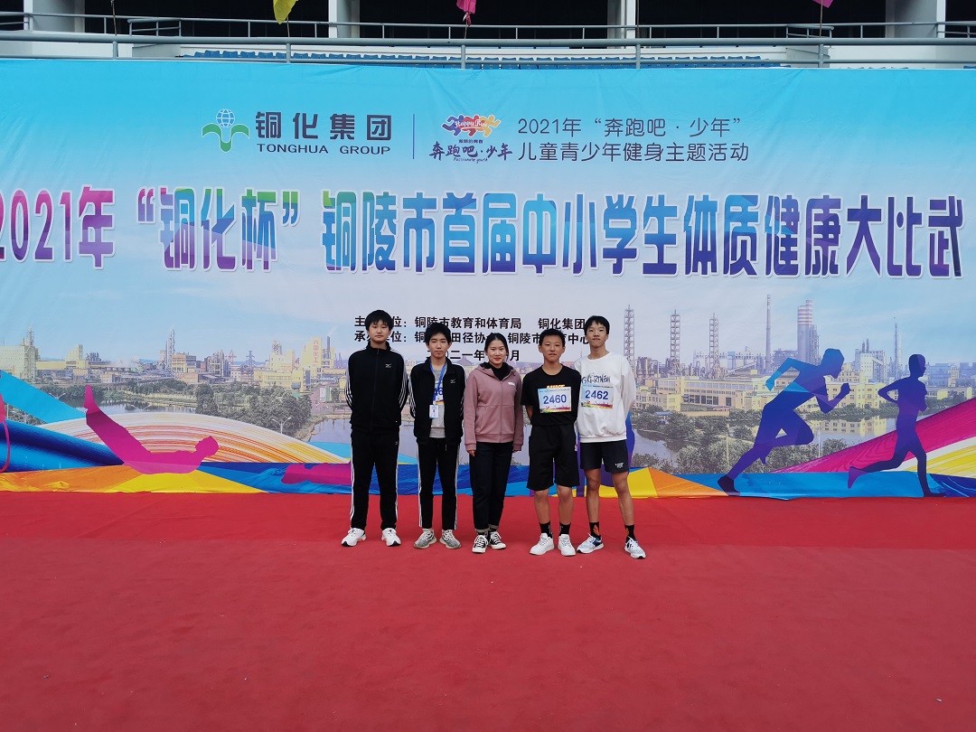 我校積極組織學生代表參加銅陵市“銅化杯”首屆中小學生體質健康測試大比武,初中和高中各選派了8名運動員參賽。