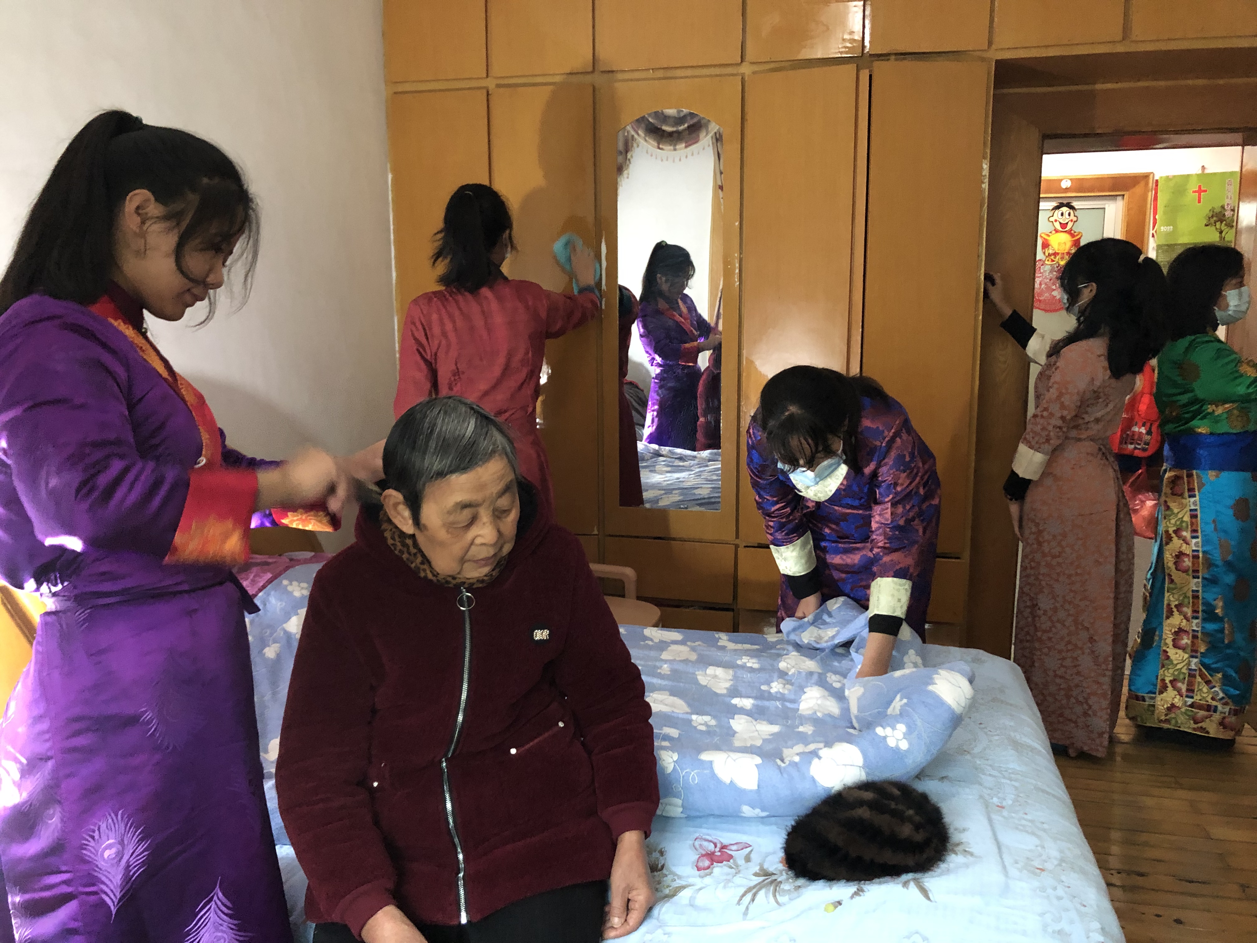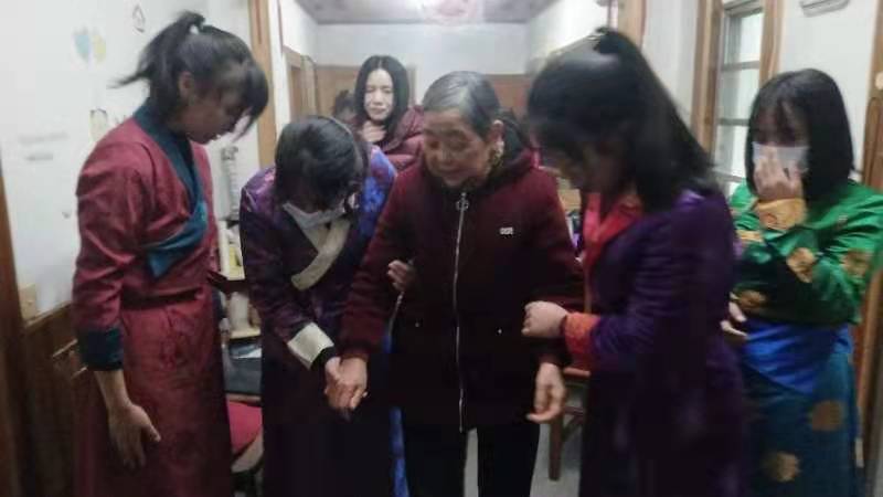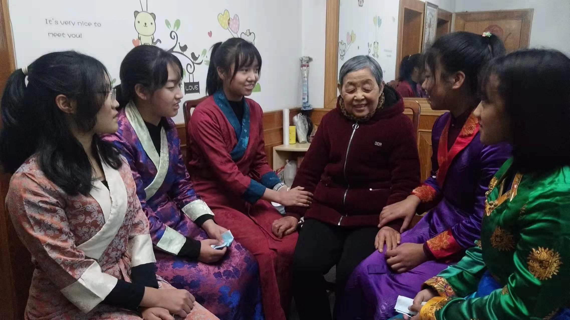 來自市五中高101班的五名藏族學(xué)生志愿者穿上漂亮的藏裝,來到獅子山社區(qū)銅霞新村一名老黨員家中。見面后,五名藏族學(xué)生拉著老奶奶的手,圍坐在老奶奶身邊。奶奶慈眉善目,笑容可掬;同學(xué)們看到奶奶健康快樂也都樂不自禁。洛松曲措,為奶奶梳頭、理發(fā);旦巴央西,扶著奶奶起來活動活動;大家一起陪奶奶嘮嘮家常。奶奶一個人在家,漢族農(nóng)歷新年快到了,次仁吉巴、格桑拉姆、拉吉卓瑪幫助老人整理一下物品,拿起掃帚、抹布為奶奶徹底打掃衛(wèi)生。奶奶看到這幾個懂事的藏族孩子,打心眼里喜歡。