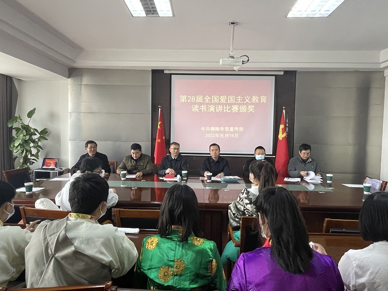 市委宣傳部常務(wù)副部長張文林講話,他對市五中在全國愛國主義教育讀書演講比賽中獲得的優(yōu)異成績給予了充分肯定,為銅陵爭光,是市五中扎實開展愛黨愛國黨史學(xué)習(xí)教育結(jié)出的碩果。同時,他希望,市五中的老師和同學(xué)們:一是要感謝偉大的時代;二是要樹立理想信念,扣牢人生第一?圩;三是再創(chuàng)輝煌,市五中已經(jīng)獲得了全國26屆、28屆兩屆全國一等獎,總結(jié)經(jīng)驗,繼續(xù)努力。