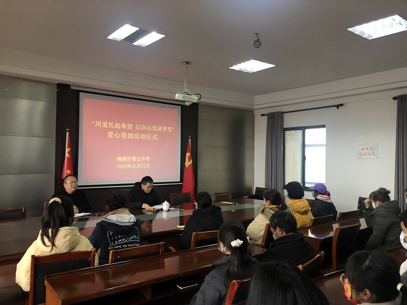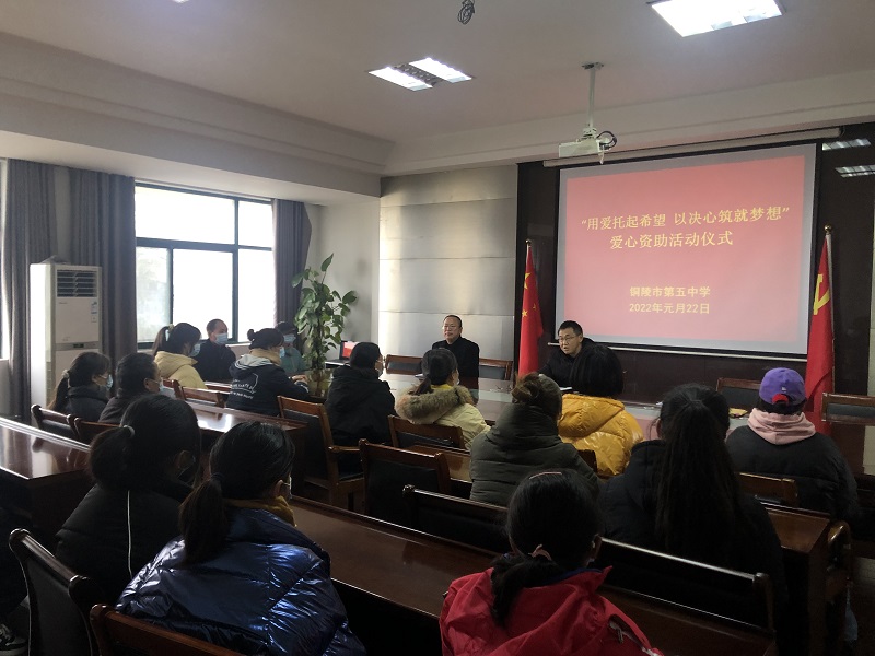 元月22日下午,市五中組織“愛心托起希望,決心成就夢想”年度愛心助學(xué)基金發(fā)放活動。學(xué)校團(tuán)委書記江嘉琪宣讀了受資助學(xué)生名單,黨支部書記校長沐揚(yáng)、工會主席瞿大寨給受資助學(xué)生發(fā)放了助學(xué)金,校領(lǐng)導(dǎo)與部分班主任走訪了姚惟萍、葛沈健等同學(xué)家庭,與家長交流,了解學(xué)生的學(xué)習(xí)和生活情況。受助家長對市五中領(lǐng)導(dǎo)和教師的關(guān)愛,表達(dá)了真誠的感謝。