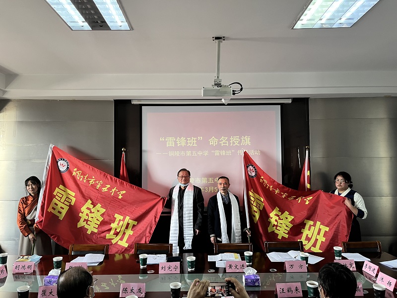 市五中命名高一(六)班和高二(六)班為“雷鋒班”,傳承“雷鋒班”光榮傳統(tǒng),當(dāng)年“雷鋒班”的班長和團(tuán)支部書記,將“雷鋒班”的班旗傳給了新命名的“雷鋒班”班長和團(tuán)支部書記,標(biāo)志著“雷鋒班”的班旗又在五中飄揚(yáng)。