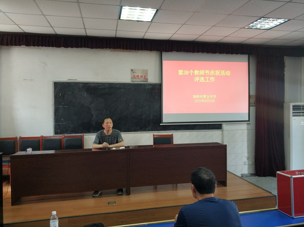 2022年8月5日下午,市五中組織開展第38個教師節(jié)慶;顒釉u選工作。此項工作根據(jù)市教體局的統(tǒng)一部署展開,工作中堅持公開公平公正原則。