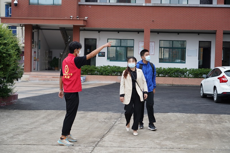 五中校園內(nèi),處處看到志愿者的身影,教師志愿者在校門口測溫、監(jiān)督家長掃描兩碼,學(xué)生志愿者們幫助新生卸行李、運行李,引導(dǎo)新生及家長通過宣傳欄中分班名單迅速確定班級。即使天空下著細(xì)雨,依舊擋不住他們的熱情,現(xiàn)場的一切井井有條。教師、學(xué)生志愿者也彰顯了市五中教師、學(xué)子熱情、友善、勤勉的一面。