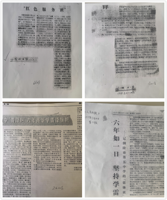 老教師們?cè)诠?jié)目中不忘初心憶往昔:五中建校至今已歷經(jīng)半個(gè)世紀(jì),當(dāng)初是礦辦學(xué)校,只有一個(gè)四合院,連做操的地方都沒(méi)有,條件十分簡(jiǎn)陋。1977年,學(xué)校被銅陵市委命名為“雷鋒班學(xué)校”,師生先進(jìn)事跡于當(dāng)年3、4月份被《人民日?qǐng)?bào)》和《光明日?qǐng)?bào)》頭版、2版分別報(bào)道,又被《安徽日?qǐng)?bào)》、《銅陵戰(zhàn)訊》登載……在銅陵教育事業(yè)的長(zhǎng)卷中留下光輝一頁(yè)。