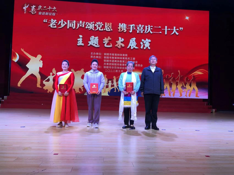 為深入學(xué)習(xí)貫徹黨的二十大精神,全面貫徹黨的教育方針,落實(shí)立德樹(shù)人根本任務(wù),10月28日,由市教體局主辦,市教體局關(guān)工委、市教體局退教協(xié)、市教體局團(tuán)委承辦的“老少同聲頌黨恩,攜手喜慶二十大”主題藝術(shù)展演活動(dòng)在市示范性綜合實(shí)踐基地舉行。我校退教協(xié)參演的節(jié)目《國(guó)家喜慶二十大,五中歡唱哈達(dá)歌》得到評(píng)審組一致好評(píng),榮獲一等獎(jiǎng),并受邀參加下午的比賽直播做壓軸表演。