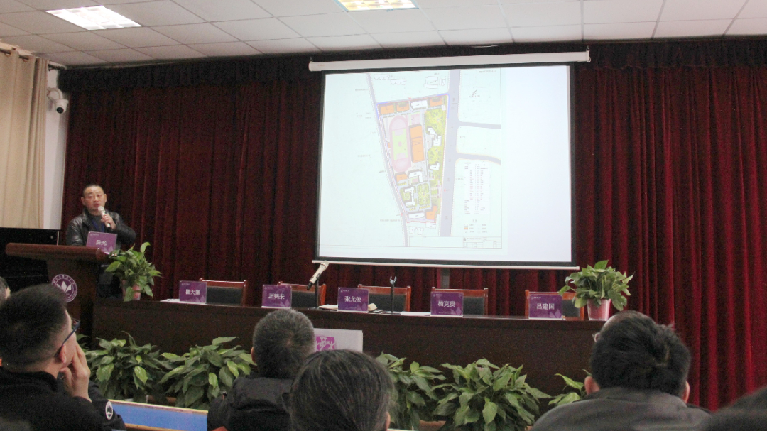 接著,學(xué)?倓(wù)處主任陳光向全體教師展示了校園擴(kuò)建工程的設(shè)計藍(lán)圖并征求廣大教師建議。藍(lán)圖中,我校將增建大型報告廳、藝體活動樓、女生住宿樓等等,設(shè)計清晰,目標(biāo)明確,全方位的展示了校園擴(kuò)建后為方便師生校園生活所設(shè)計的一項項舉措,受到教師們熱烈的討論和真摯的贊賞。