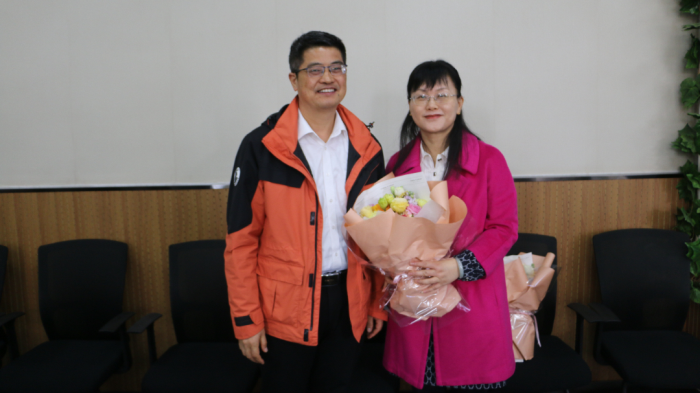 時(shí)值“3.8國(guó)際婦女節(jié)”,張尤俊向顧曉惠贈(zèng)送了鮮花,并祝她節(jié)日快樂(lè)。顧曉惠向我校四位女教師贈(zèng)送了節(jié)日禮物。