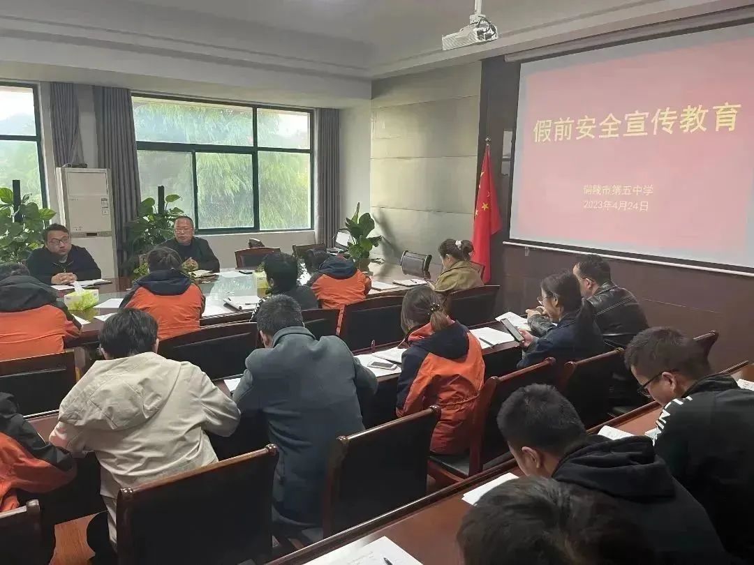 4月24日下午,學校在綜合樓四樓會議室召開假前安全教育布置會。