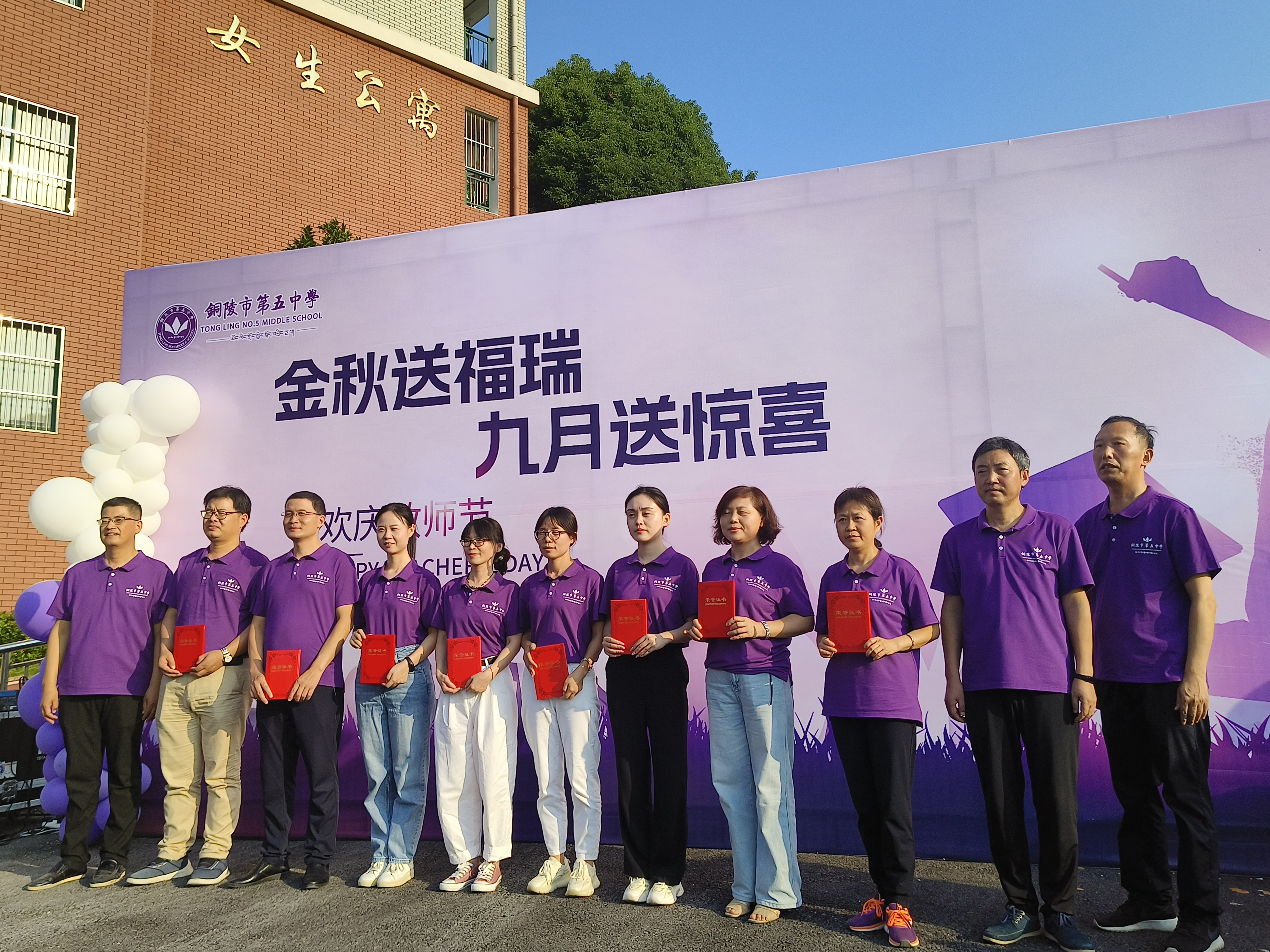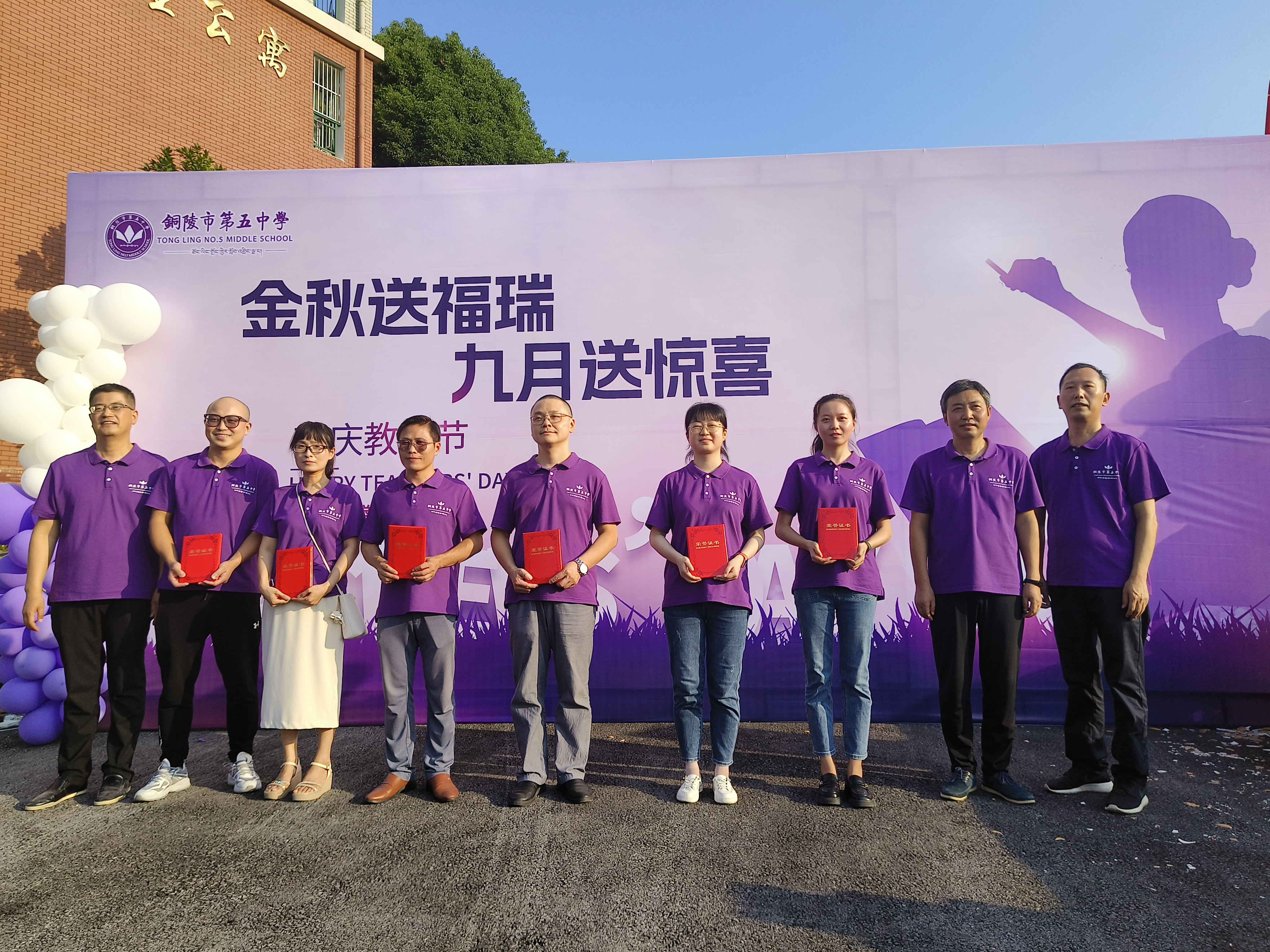 9月8日,時(shí)值教師節(jié)來(lái)臨之際,銅陵五中為在2022-2023學(xué)年教學(xué)設(shè)計(jì)評(píng)比中獲獎(jiǎng)的教師舉行了表彰儀式。校黨總支委員、副校長(zhǎng)呂建國(guó)宣讀了獲獎(jiǎng)教師名單。校黨總支書記、校長(zhǎng)張尤俊等校領(lǐng)導(dǎo)為獲獎(jiǎng)教師頒發(fā)了榮譽(yù)證書并致以教師節(jié)節(jié)日問(wèn)候。隨后,校領(lǐng)導(dǎo)與獲獎(jiǎng)教師合影留念。