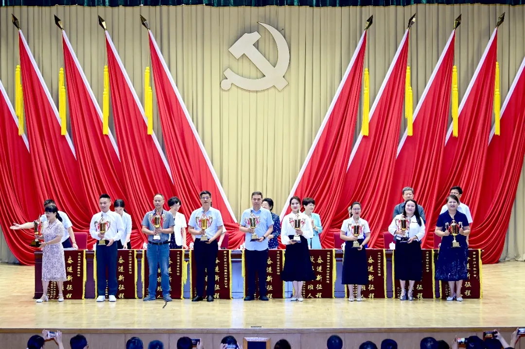 銅陵五中黨總支書記、校長張尤俊受邀參加大會(huì)并代表安徽省獲評(píng)第31屆讀書活動(dòng)特等獎(jiǎng)教師領(lǐng)取獎(jiǎng)杯。銅陵市新華書店有限公司副總經(jīng)理徐峰在大會(huì)上領(lǐng)取讀書活動(dòng)錦旗。