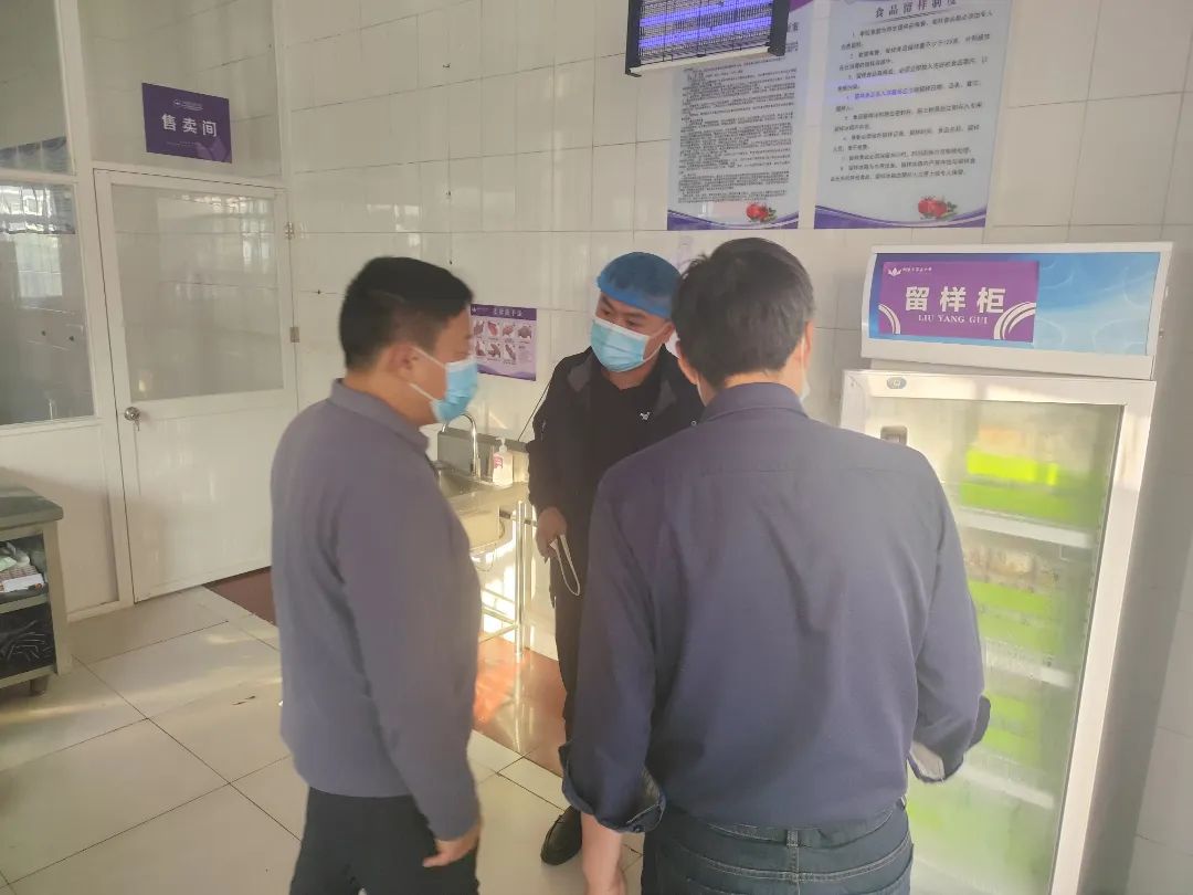 會后領(lǐng)導(dǎo)深入食堂一線,詳細(xì)了解貯存、留樣、加工制作等環(huán)節(jié)的情況,在后廚詳細(xì)查看了設(shè)備設(shè)施、食品保質(zhì)期、衛(wèi)生清潔、人員健康、場地消毒等情況。校領(lǐng)導(dǎo)重點詢問了食品安全操作規(guī)范等具體情況,要求食堂管理人員嚴(yán)格執(zhí)行餐飲服務(wù)食品安全操作規(guī)范,讓師生們吃得安心、舒心、放心。