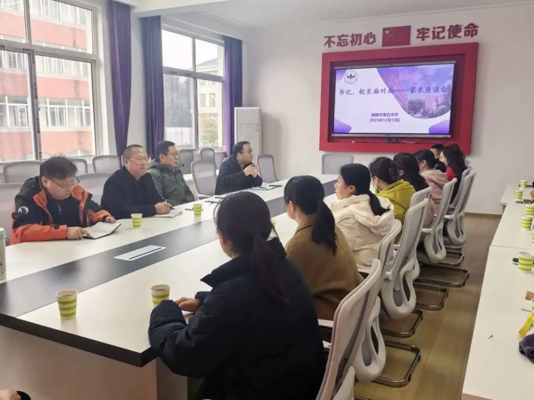 為深化家校溝通,凝聚育人合力,共同助力學生健康成長,2025年12月19日下午,銅陵五中召開了高一年級“書記、校長面對面”學生家長座談會。校黨總支書記徐松成,校黨總支委員、副校長瞿大寨,高一級部主任安濤與各班家長代表齊聚一堂,共話學生發(fā)展。座談會由政教處主任徐蛟龍主持。