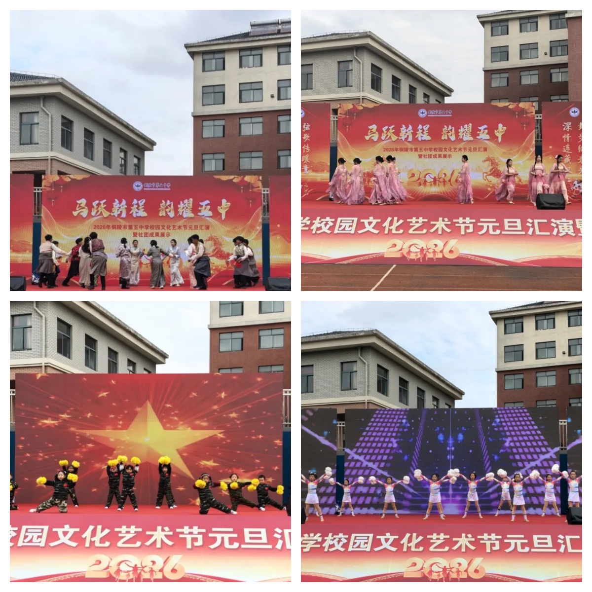 2025 年 12 月 31 日下午,銅陵市第五中學 "馬躍新程 韻耀五中" 校園文化藝術(shù)節(jié)元旦文藝匯演暨社團成果展示在學校操場隆重舉行。全校師生歡聚一堂,在冬日暖陽中共享藝術(shù)盛宴,以蓬勃朝氣迎接 2026 年的到來。