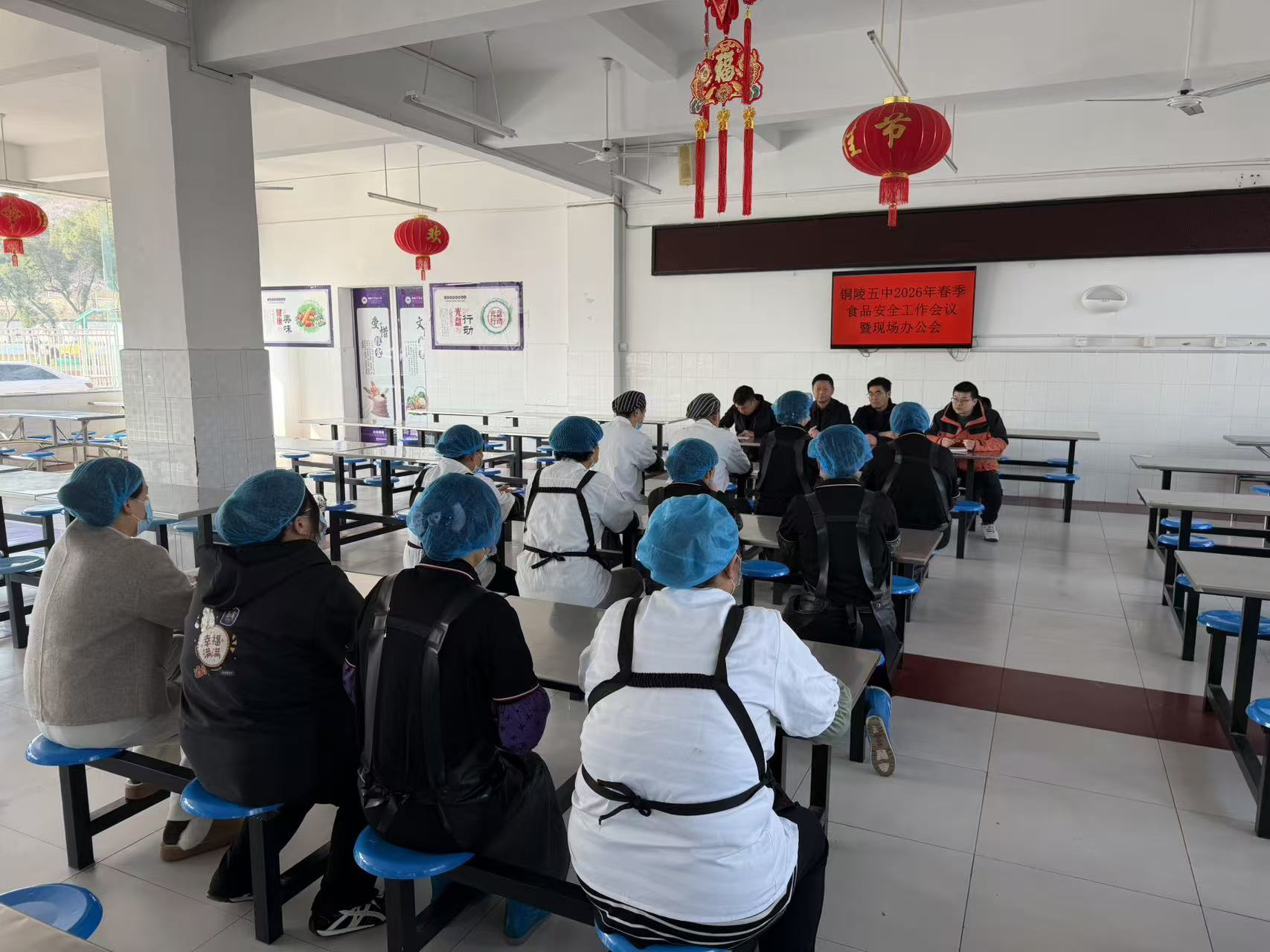 為全面壓實校園食品安全主體責(zé)任,細化食堂管理各項舉措,切實保障全校師生“舌尖上的安全”,3.11日上午在食堂大廳,銅陵五中召開2026年春季食品安全工作會暨食堂現(xiàn)場辦公會。校黨總支委員、副校長陳浩,?倓(wù)處負責(zé)人程永生,校食品安全員吳正,南通嘉華餐飲銅陵區(qū)負責(zé)人汪華及全體食堂工作人員參會,會議聚焦食品安全管控、服務(wù)質(zhì)量提升、膳食優(yōu)化升級等核心工作,精準部署、狠抓落實。